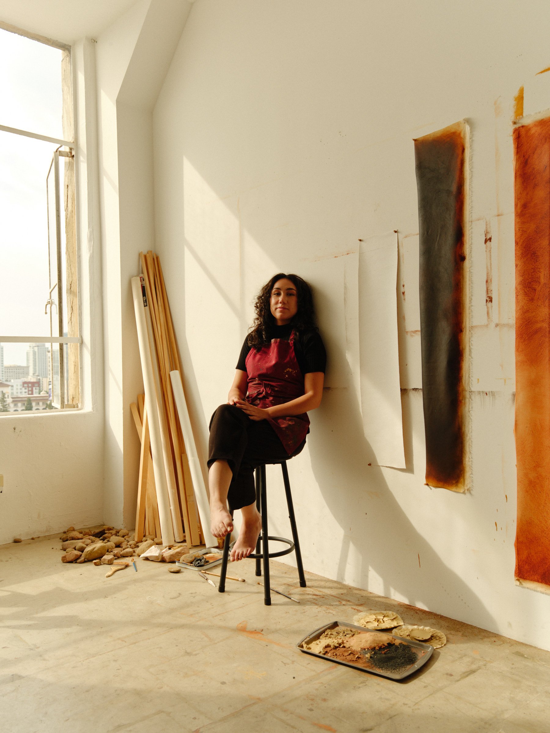 Júlia Godoy is a Brazilian artist whose paintings are created using locally sourced natural pigments. Her work explores memory, place, and the emotional symbolism of color, using earth based materials as both medium and metaphor.